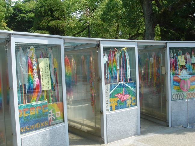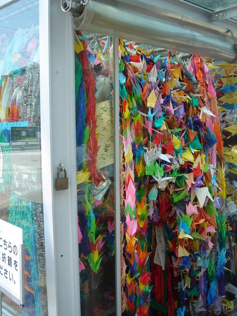Tous les ans, des enfants du monde entier plient des grues et les envoient à Hiroshima. Les origamis sont disposés autour de la statue. Grâce à Sadako, la grue en papier est devenue un symbole international de la Paix.